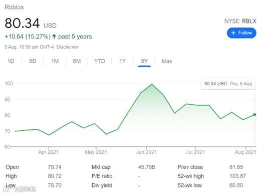今年 3 月,Roblox 在纽交所上市。这家在中国没什么知名度的公司,当天市值一度逼近 400 亿美元,相比一年前涨了 10 倍。Roblox 主要提供了游戏引擎和软件工具,开发者可以借此创建游戏,玩家也能在各种游戏里“氪金”,开发者因此直接获得收入。Roblox 上市时在招股书上强调他们想做的是元宇宙,一个存在于科幻小说里的虚拟空间。