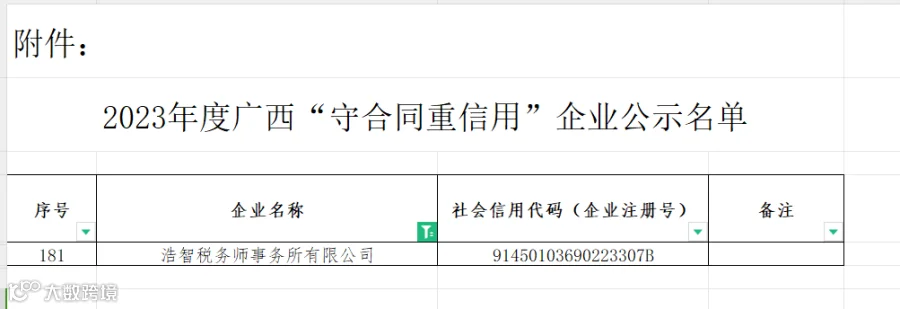 近日,广西壮族自治区市场监督管理局公示了2023年度广西“守合同 重信用”企业名单,浩智税务师事务所凭借良好的企业信誉和规范的合同管理体系,再度荣获2023年度自治区“守合同 重信用”企业荣誉称号。对浩智而言“守合同 重信用”称号不仅是一份荣誉,更是一份社会责任,是社会各界对浩智税务师事务所长期以来守信经营、优质服务的信赖与认。