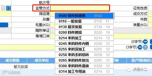 | 监管方式代码 | 监管方式简称 | 监管方式全称 |