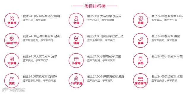 2016年天猫双十一各类目TOP3排行榜