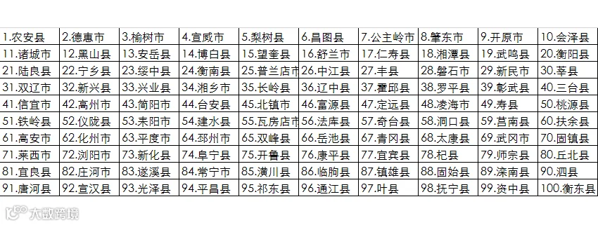 考虑到王大鹏天使轮地推团队的规模,我决定帮他选出养猪O2O项目健康度最高的100个县(或县级市)。其列表如下: