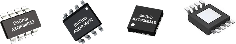 AXOP34032 具有轨至轨输入和输出摆幅能力,容性负载驱动能力可达数百pF。封装方面AXOP34032可提供多种不同的封装形式:SOT23-8, SOP8,DFN8 和 eSOP8。eSOP8封装的输出电流可达100mA。