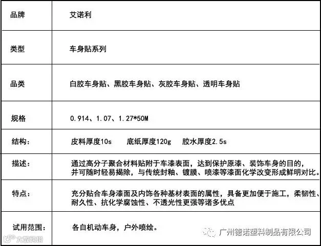 黑胶车身贴:白色PVC(100u)面料,良好的耐候性能,透明油胶背胶,平面贴覆性能优异,3年使用期