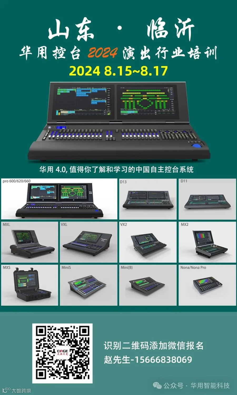 总之,这是一款您一定不能错过的国产自主研发灯光控台!想了解更多?赶紧报名参加华用控台2024演出行业培训会!只需短短三天的时间,在离你不远的地方就能学到!