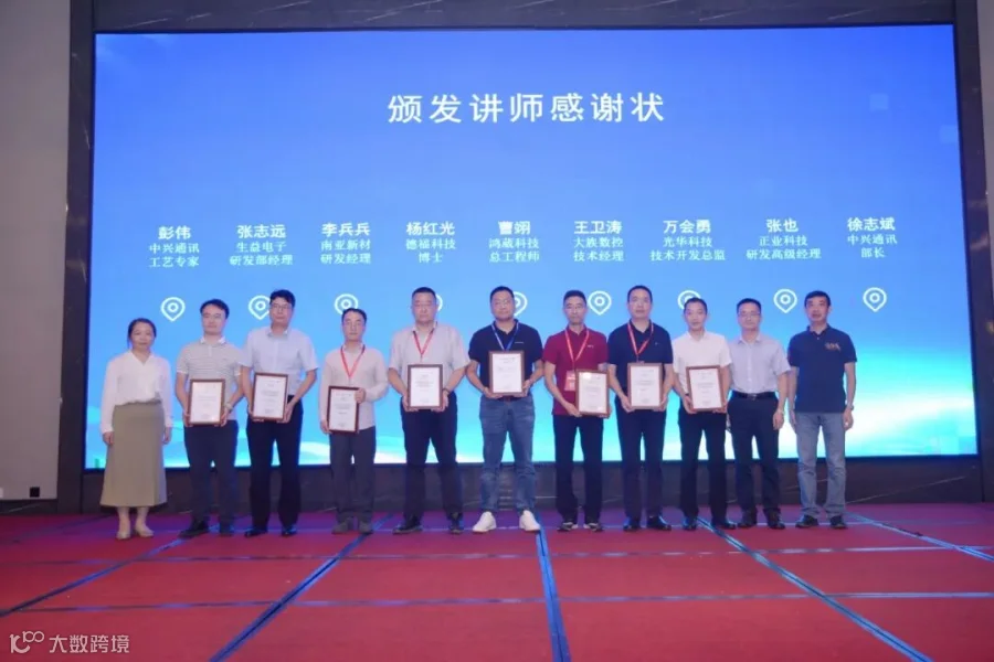 中兴通讯智造工程装联设计部部长任永会、中兴通讯采购部部长王慧、中兴通讯新品导入及材料技术部部长安维为光华科技PCB事业部技术开发总监万会勇等讲师颁发讲师感谢状。
