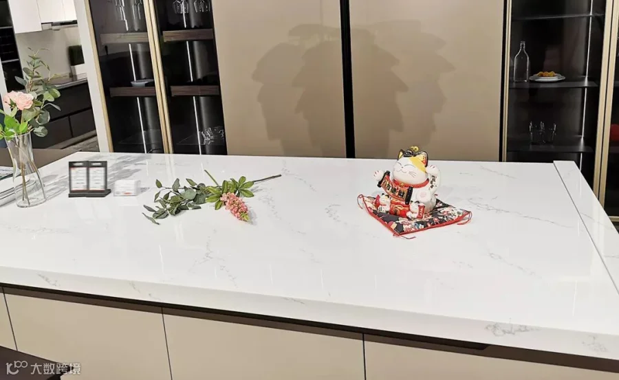 现代风格的开放式厨房中,中央岛台与厨房台面选用Koris®鱼肚白搭配浅棕色木质橱柜,让整体风格显得沉稳又不失柔和、温馨。