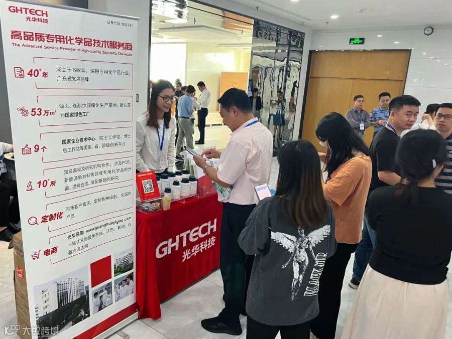交流会现场,光华科技展台吸引了不少专家学者、师生与企业代表前来交流。大家对光华科技的湿电子化学品、医药专用化学品、新能源材料等领域方向的产品尤为感兴趣。其中来自中山的高校同学表示实验室有用光华科技的试剂产品,产品品质一直都很稳定。