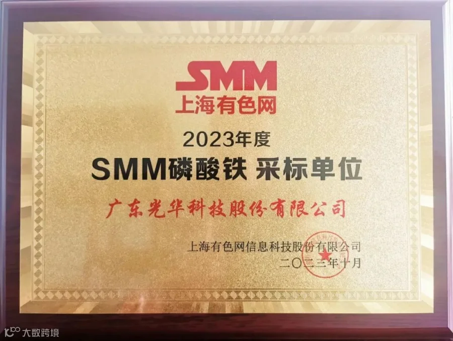 在由SMM主办的2023年中国新能源产业年会,光华科技荣获2023年度“SMM磷酸铁采标单位”,SMM作为新能源行业的独立第三方报价和信息平台,秉承着“公平、公正、公开”的原则,每个成交日所报的上海有色网现货价格(SMM价格)和行业资讯均受到行业高度、广泛认可。成为SMM采标单位,代表着光华科技产品受到主流市场的认可并已成为交易参考的重要指标。