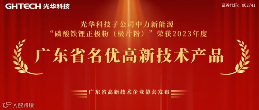 喜讯 | 光华科技旗下中力新能源“磷酸铁锂正极粉(极片粉)”荣获“广东省名优高新技术产品”认定!