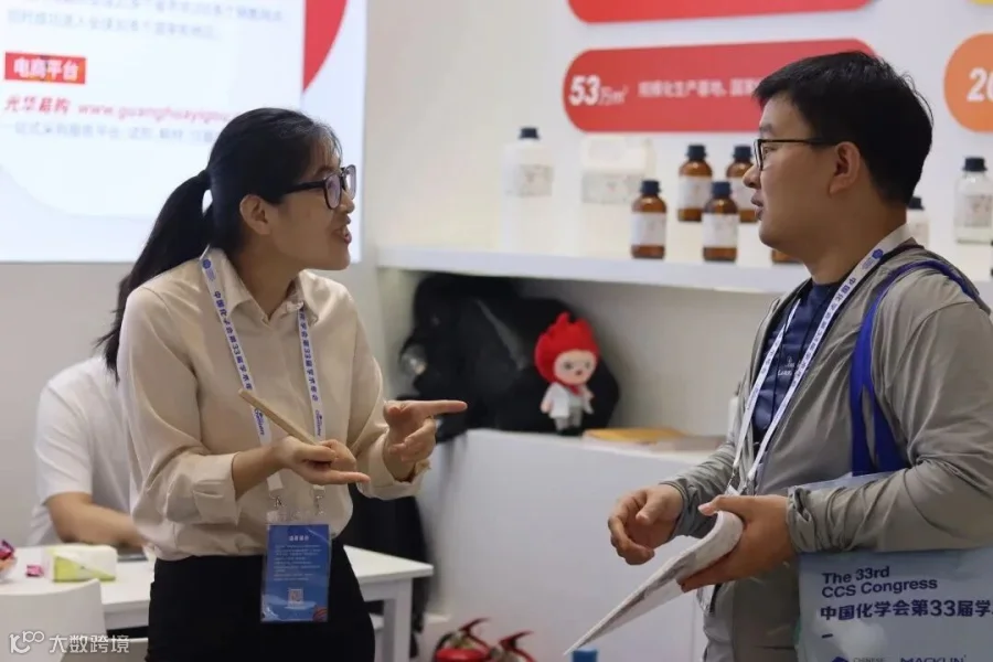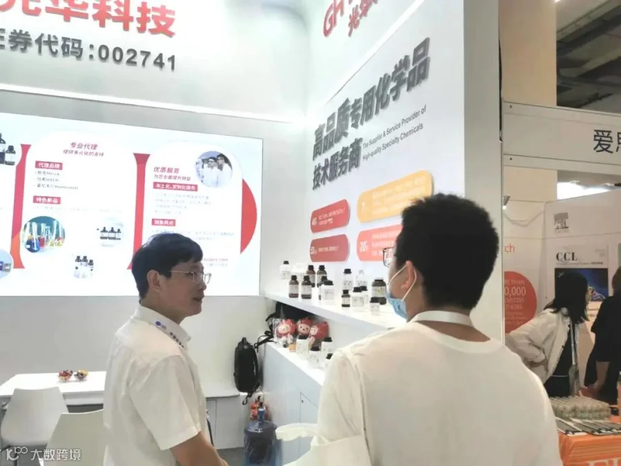 现场光华科技展出多款高品质产品,如高纯级碳酸钠、无水草酸、草酸锂、氟化钠、色谱级甲醇、乙腈等产品,助力新能源、医药、日化、分析检测等领域探索创新。