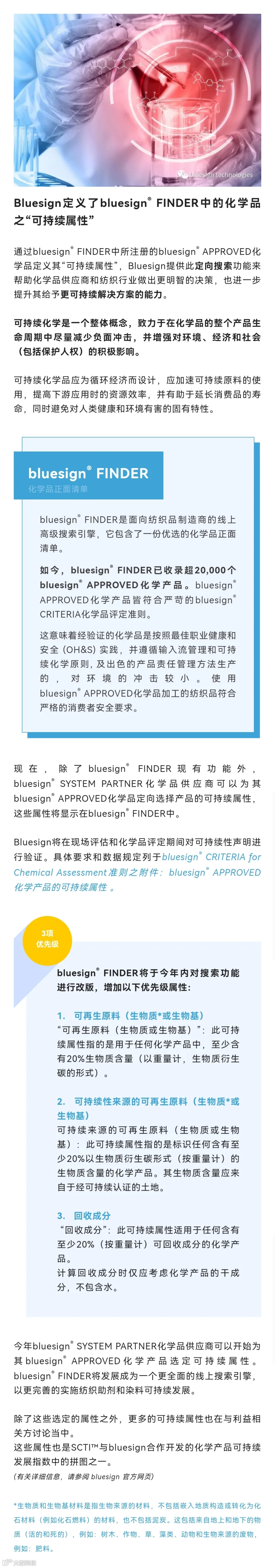 导读:Bluesign定义了bluesign® FINDER中的化学品之“可持续属性”