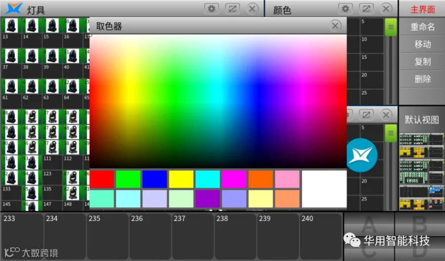 |灵活强大的灯具窗口,可按照灯具现场灵活摆放对应灯位布局,选灯做效果从容不迫。