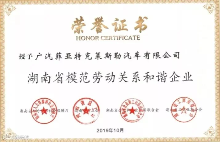 10月11日,广汽菲克工会副主席刘艳代表公司在湖南省人力资源和社会保障厅组织的湖南省构建和谐劳动关系先进表彰大会上接受荣誉表彰。