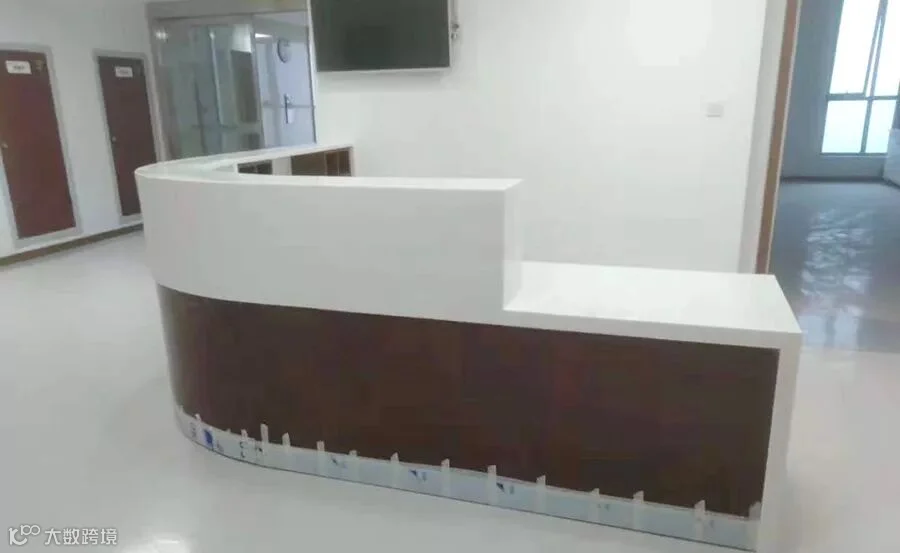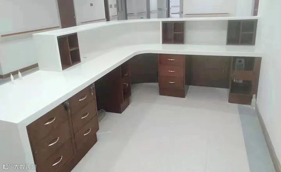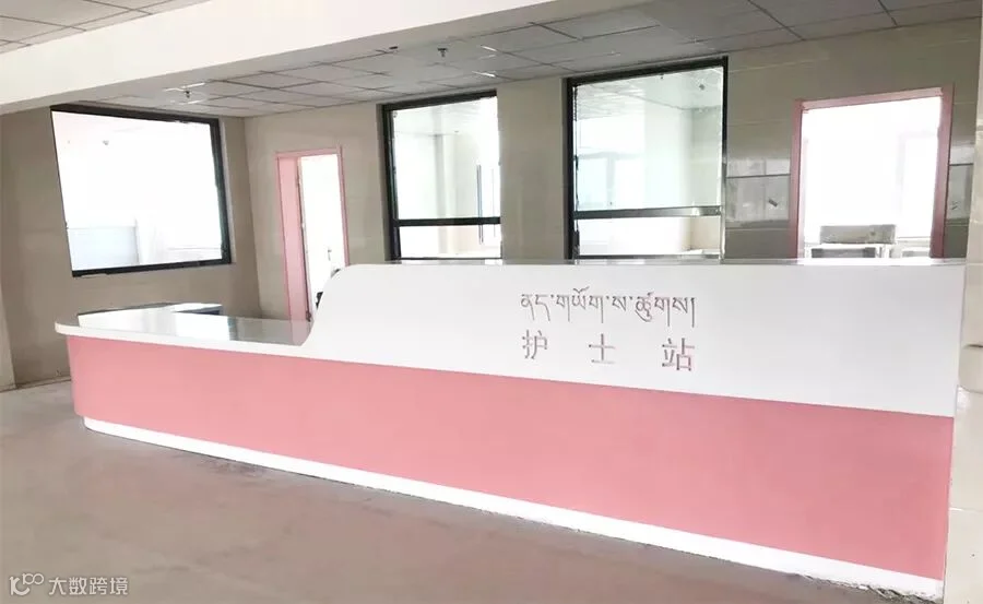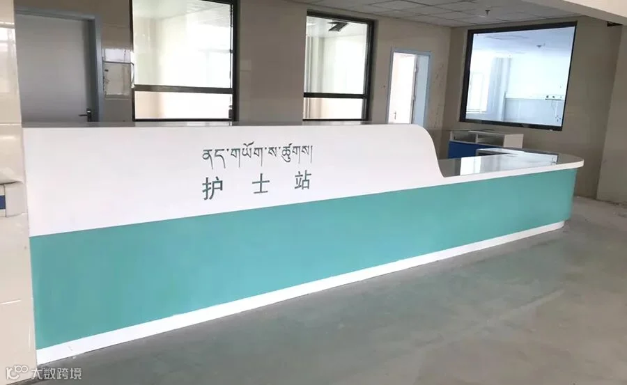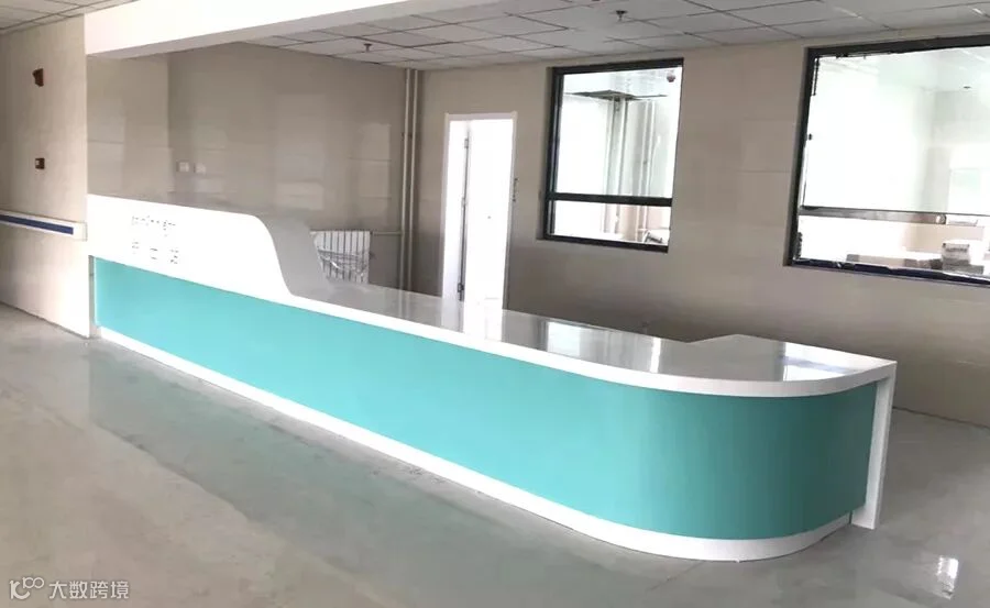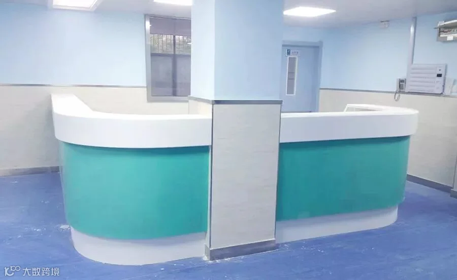 青海医院选择Koris®MA1458翡翠绿与MA1395天使红搭配纯白制作护士站工作台面,弧形的角度使用了热弯性能一体成型,还充分使用了可填料性能。