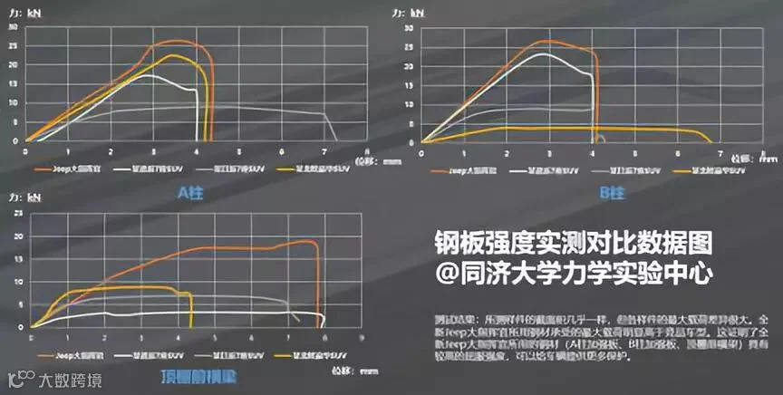 由此可见,大指挥官的乘员舱(A柱、B柱、纵梁、横梁)钢板强度都是采用军工级别的材质,以此保护车主日常驾驶环境下的安全。