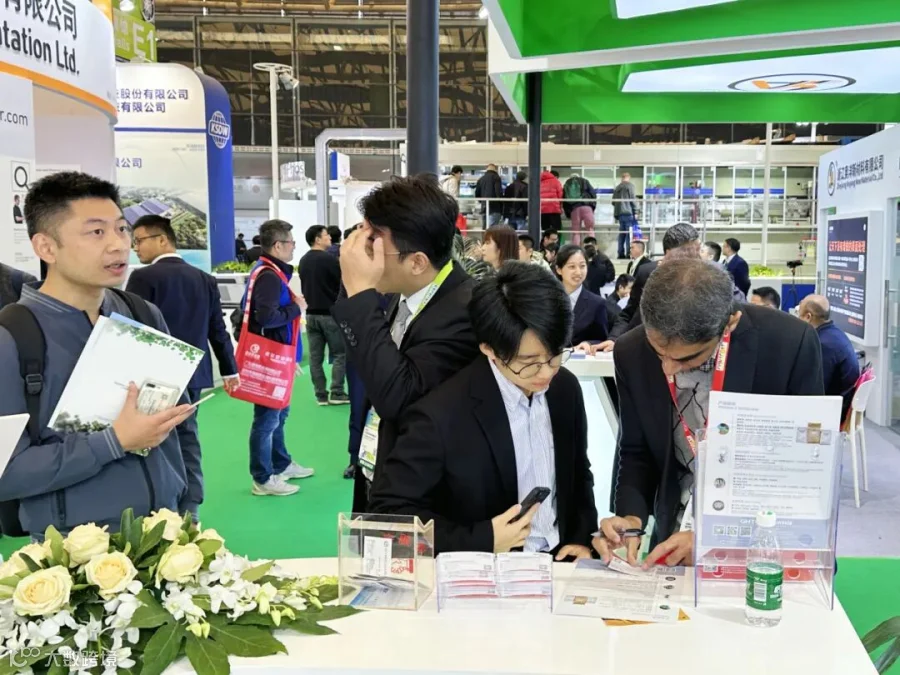 光华科技展台前咨询观众络绎不绝,交流气氛热烈。光华科技产品纯度、杂质含量等行业内领先的技术指标引起了广泛关注,本次展出的高性能表面处理化学品不仅具有纯度高、金属杂质含量低等优良性能,且在实际应用中显示出了优秀的稳定性和可靠性,溶解速度、镀层均匀性、延展性等方面获得了客户的认可。不少来自韩国、日本、印度、巴基斯坦的观众特地前来展台与光华科技专业人士咨询探讨,光华科技铜、镍、锡、钴金属盐系列产品引起他们极大兴趣,期待能达成更深入的交流合作。