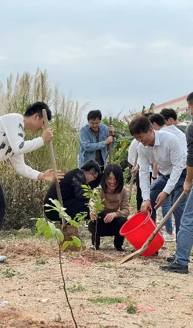 光华科技子公司珠海中力新能源科技有限公司的第四届植树节活动也如期而至。勤劳的中力“园丁们”相约来到了中力百果园,准备好铁锹、锄头、水桶、幼苗等植树必备物资,迎着霞光开始了今年的植树活动。现场小伙伴们迫不及待的拿起手中的工具,分工明确,干劲十足,精心的完成了从挖坑、放树、填土、以及到浇水的每一步骤,虽挥洒汗水,却不亦乐乎。