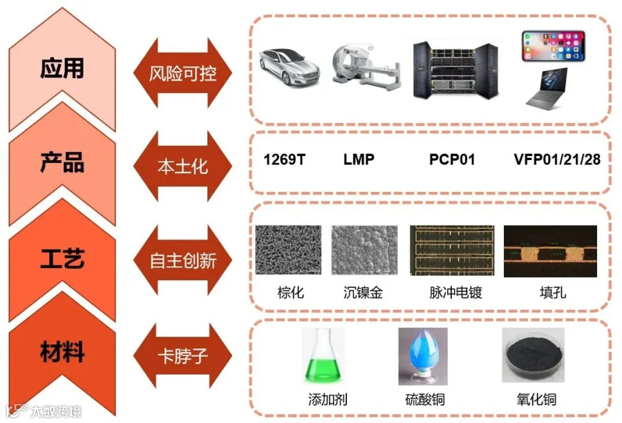 在PCB行业,光华科技率先在国内建立PCB湿制程相关化学品整体解决方案,目前公司产品涵盖氧化铜、填孔镀铜(并在业内率先提出“氧化铜+填孔药水”整体服务方案,在填孔用高纯度氧化铜、高效电镀添加剂合成及应用技术方面持续领先)、沉镍(钯)金、棕化、褪膜、OSP,以及5G领域应用键合剂等专用化学品,产品性能达国际水平,加速助力PCB产业链“国产化”进程。
