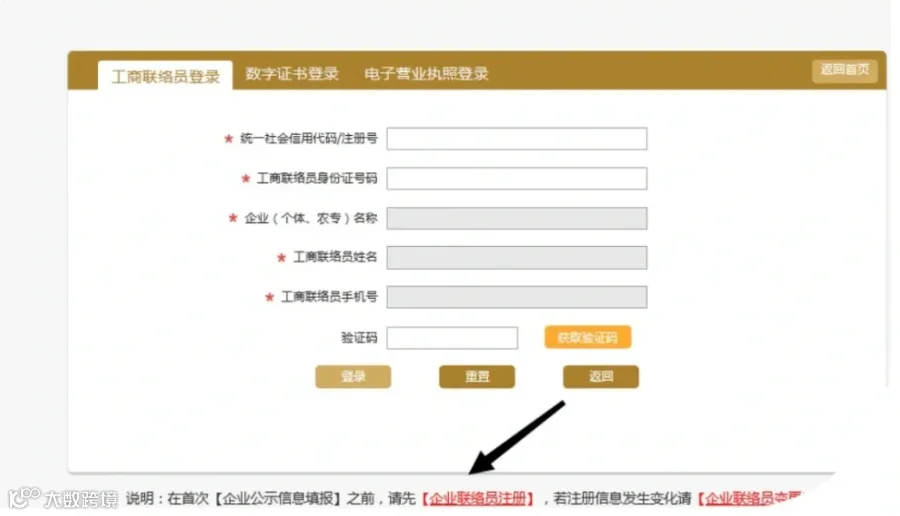 如果已经注册过工商联络员,则直接登录即可;没有注册过,需要先注册工商联络员。