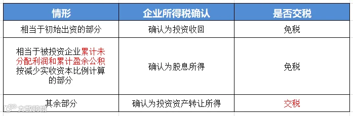 (3)其余部分确认为投资资产转让所得,需要交纳企业所得税。