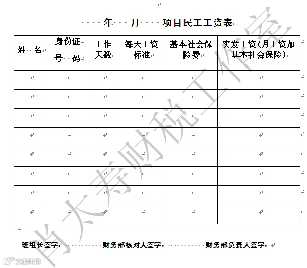(6)劳务公司财务部每月核对“民工工资表”和“劳务进度结算表”上名单的真实性。