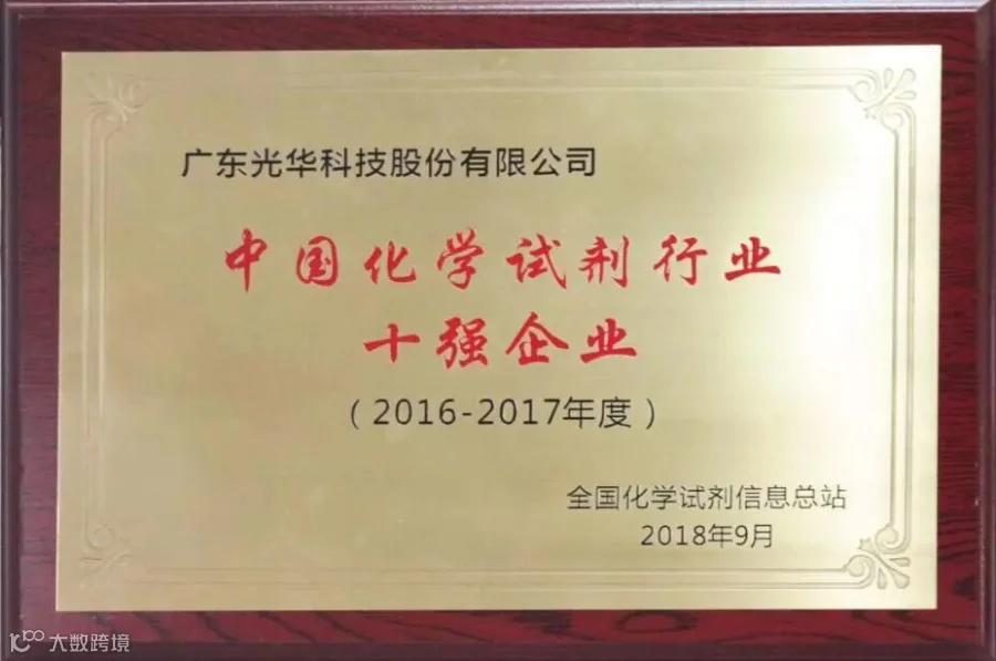 * 荣获2016-2017年度中国化学试剂行业十强企业
