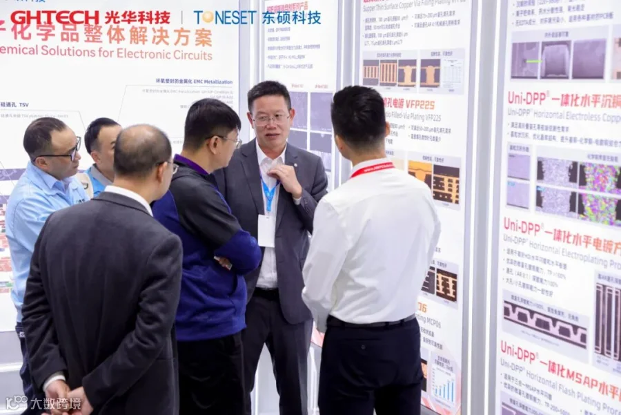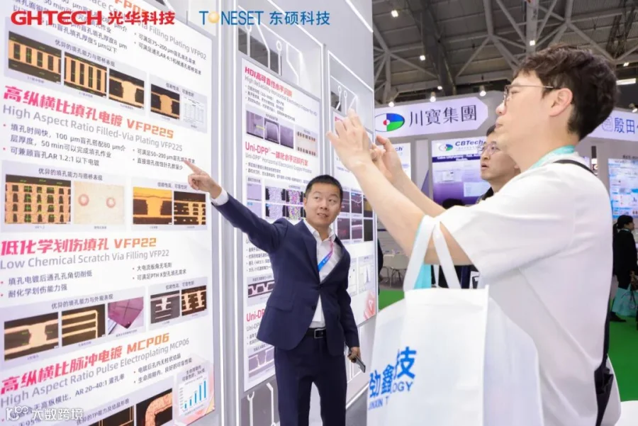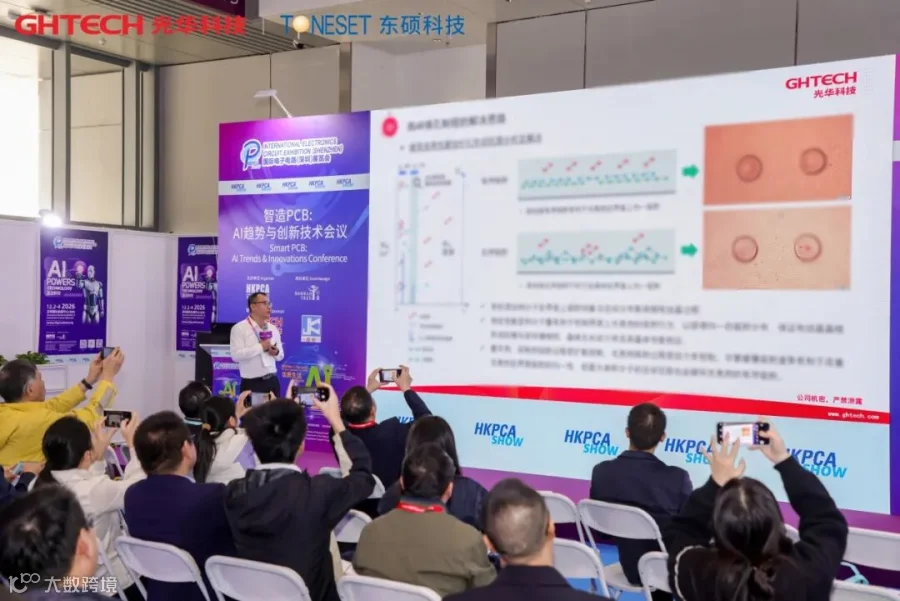 12月3至5日,PCB行业盛会——国际电子电路(深圳)展览会(HKPCA Show)成功举办。GHTECH光华科技及成员企业TONESET东硕科技携AI驱动下新一代PCB、封装载板与先进封装互连等技术方案精彩亮相,吸引了众多行业专家与合作伙伴莅临交流、洽谈合作。同期论坛上,发表了《面向 224/448 Gbps场景的新型铜面键合剂分子结构设计与应用》与《高AR盲孔填孔电镀及电镀主盐影响因素研究》两大技术报告,会议现场引起广泛关注。