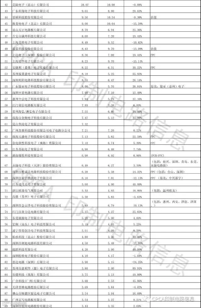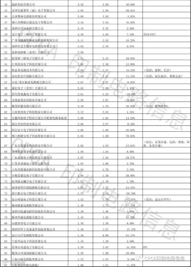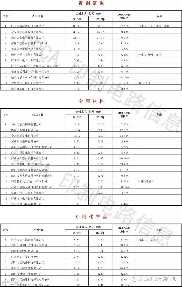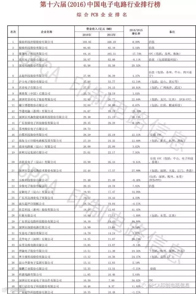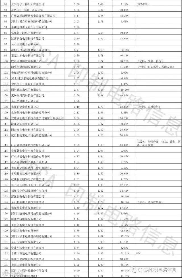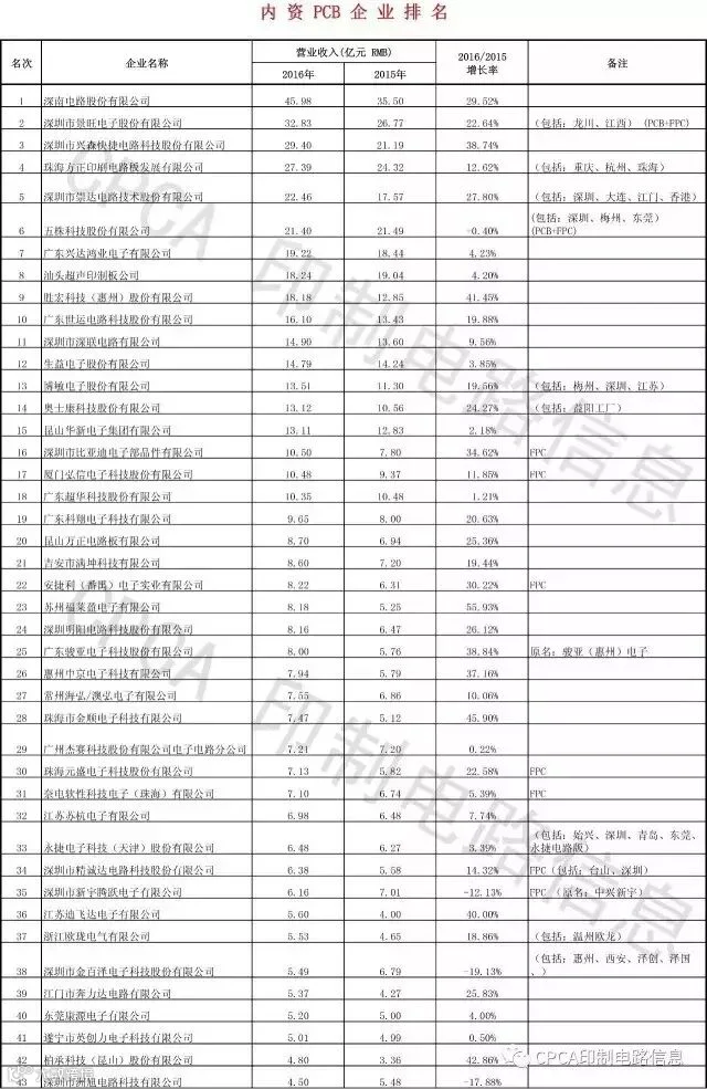 附:CPCA第十六届(2016)中国电子电路行业排行榜详细榜单(信息来源:CPCA印制电路信息)