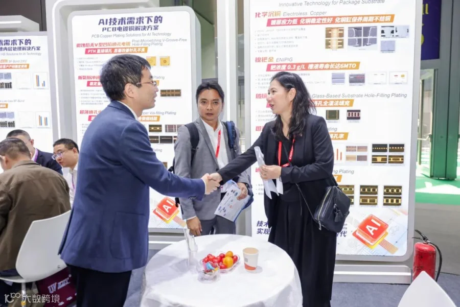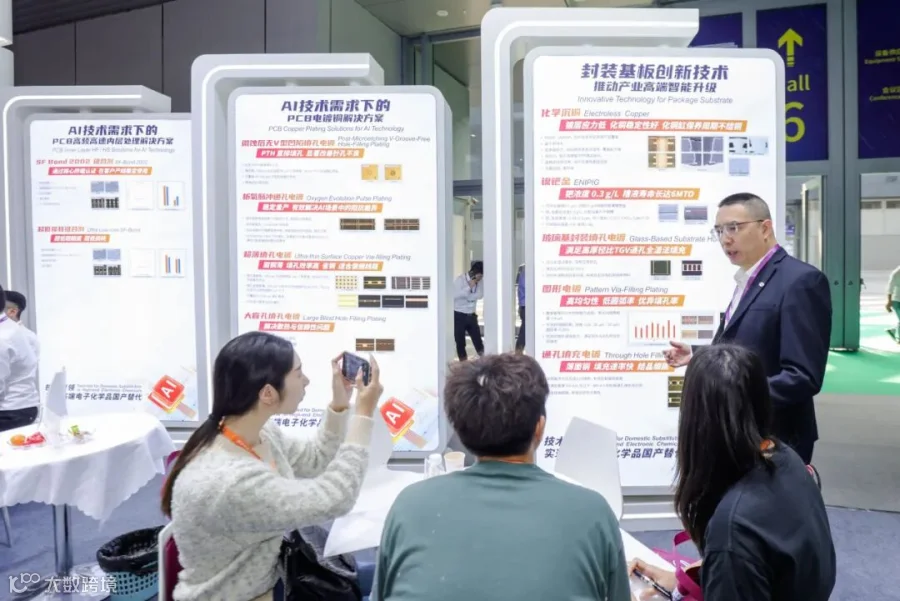展会期间,光华科技展馆内人潮涌动,来自世界各地的专业人士、行业精英、企业巨头齐聚一堂,座无虚席。此次,光华科技重点推出了AI技术需求下的新一代PCB解决方案、封装基板(玻璃基板),以及半导体用先进封装金属湿法沉积技术等创新方案,吸引了众多观众驻足参观,咨询了解。现场专业的产品讲解和细心热情的接待获得大家的认可与肯定。