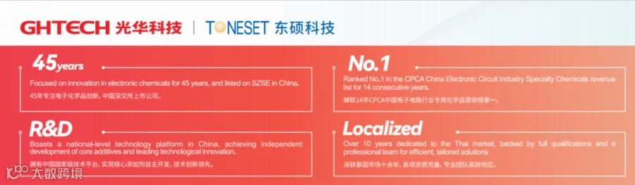 光华科技基于对行业趋势的洞察,充分利用泰国办事处优势,积极响应广大PCB板厂海外发展与规模化生产需要,在泰国设立办事处,配备本土化团队,可提供快速响应的技术支持,与当地合作完善配套仓储能力,有效缩短供货周期。同时,光华科技不断扩大本地人才队伍,稳步推进生产本土化建设,以保障客户供应链安全。
