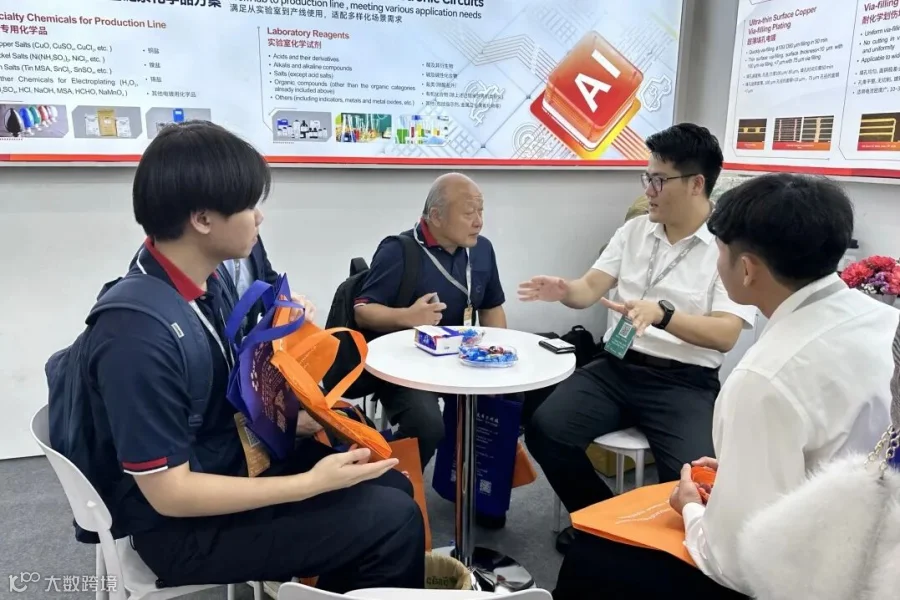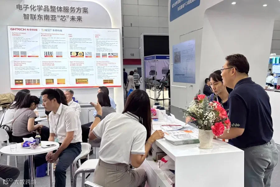 近年来,在全球PCB产业布局中,众多跨国企业在东南亚设立生产基地,带动上游电子化学品需求持续增长。光华科技作为国内PCB专用化学品的龙头企业,吸引了众多来自泰国、马来西亚等东南亚地区的PCB制造商特地前来展台交流,并对氧化铜、硫酸铜等金属盐类产品,以及电子电路湿制程整体服务方案展现出浓厚兴趣。供应链安全也是众多客户的关注点,光华科技专业的销售与技术服务同事为咨询的观众作出了细心解答。