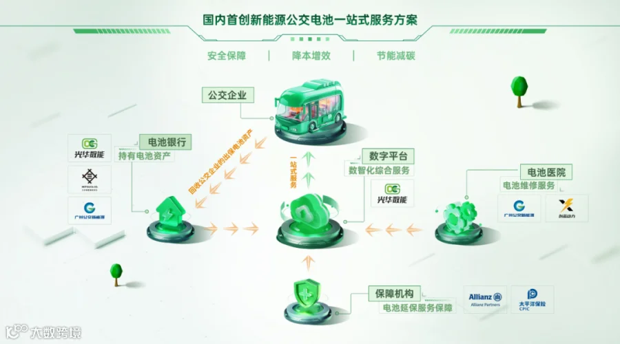 广州公交集团新能源公司、三井物产(广东)贸易有限公司、光华数字能源技术(广东)有限公司、中国太平洋财产保险股份有限公司四方签署《一站式电池延保整体服务方案合作四方备忘录》,将共同结合新能源和数字化未来发展趋势,将携手探索发展动力电池全生命周期的检测、维护、延保、回收等一站式专业服务模式。