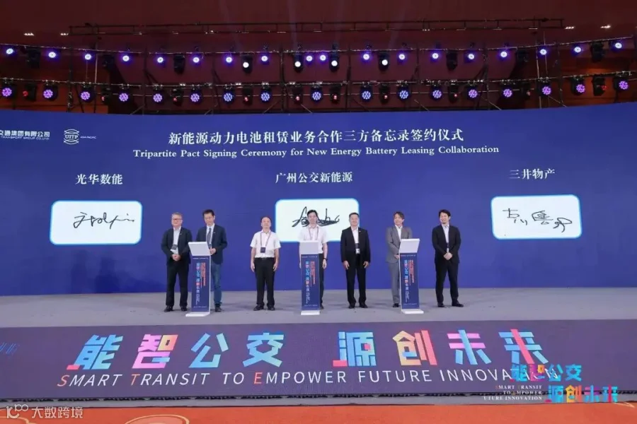 签约仪式上,广州公交集团新能源公司、三井物产(广东)贸易有限公司、光华数字能源技术(广东)有限公司三方签署《新能源动力电池租赁业务合作三方备忘录》,将聚焦公共交通领域对动力电池金融及售后服务的需求,共同谋划发展动力电池融资租赁服务,为新时代公交行业的高质量发展提供支持。