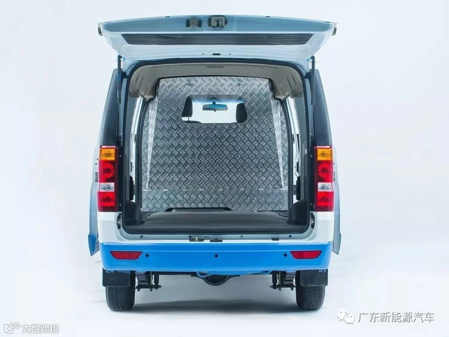 瑞驰EC35的货厢为4.8m³,货厢尺寸长1.63米,宽1.44米,高1.27米,地面十分平整。尾门为掀背式,车身左右均为侧滑门。