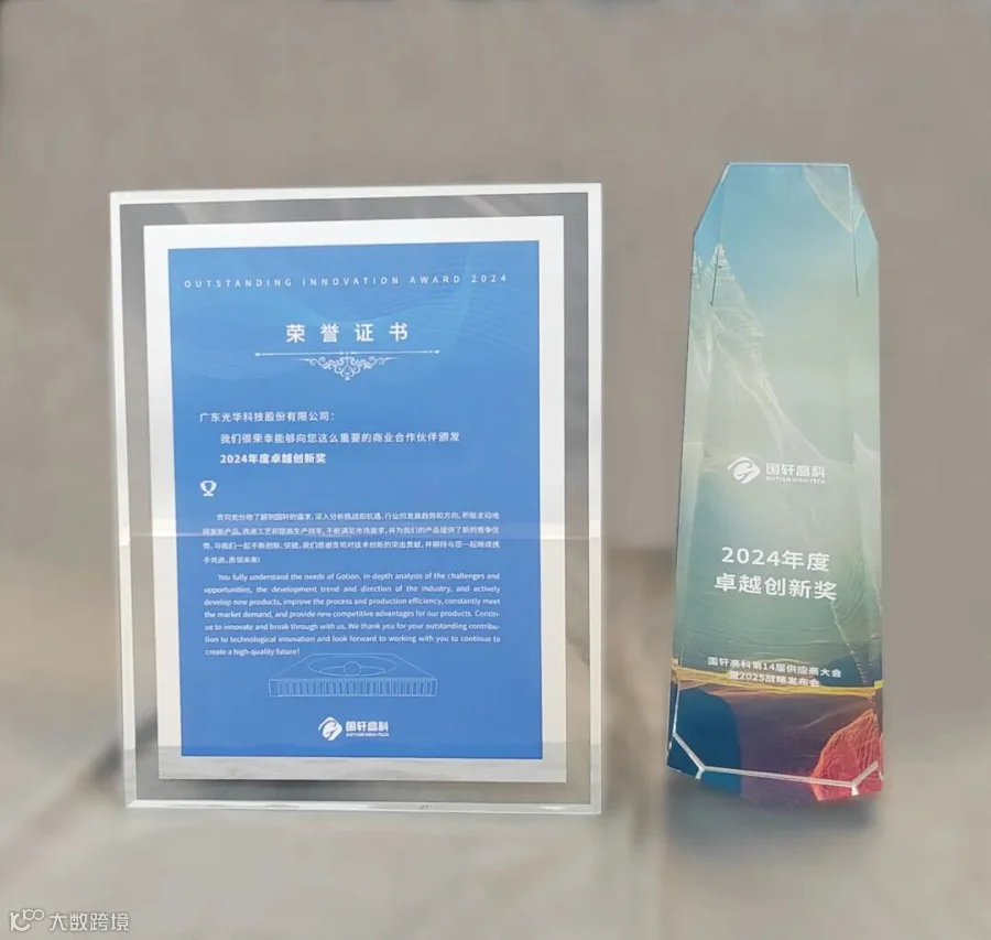光华科技现场获颁国轩高科的“卓越创新奖”重要供应商奖项