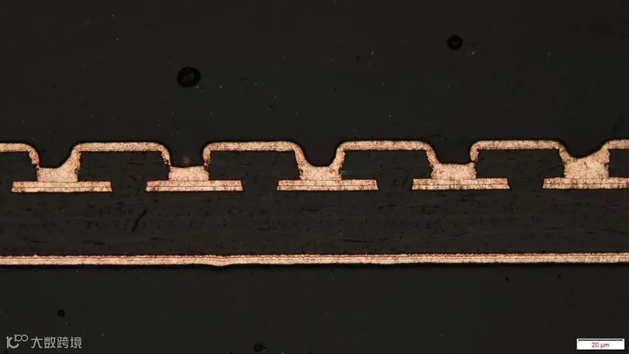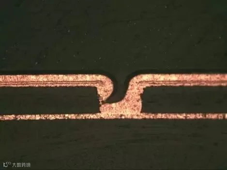 面对此缺陷,我们第一时间反应判断为可能为闪镀能力差,针对闪镀已经选择了比较好的添加剂系列,我们还是在闪镀后取切片进行分析确认,结果如下: