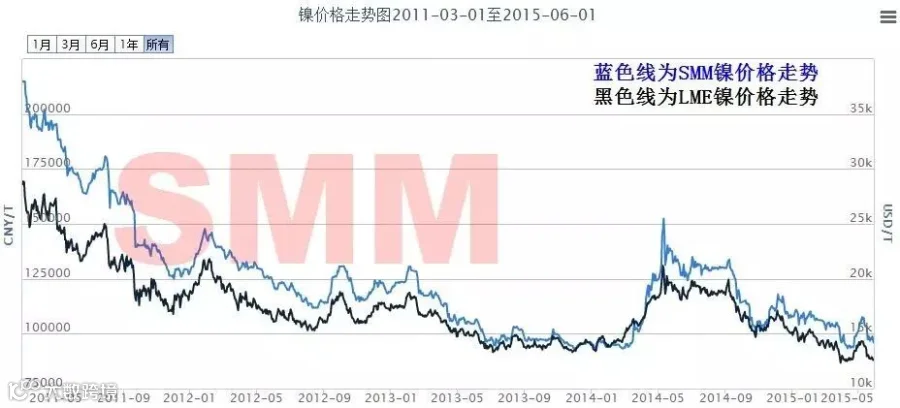 2、海关数据显示,2015年1-4月中国累计出口未锻压镍19403吨,维持在较高位,2012-2014年同一时期的该数据分别为12658吨、10027吨、19873吨。据此粗略推测,中国镍出口运送至LME仓库,可能也是推高LME镍库存的原因之一。
