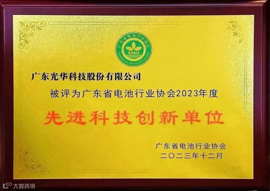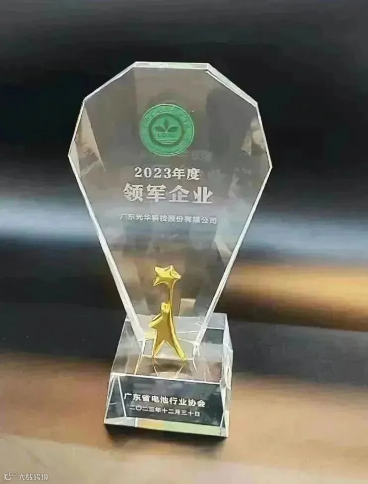 光华科技凭借在推动和引领行业发展方面做出的卓越贡献,由常务理事会推荐,经过网络投票和专家委员会评,荣获广东省电池行业协会2023年度“领军企业”以及“先进科技创新单位”。