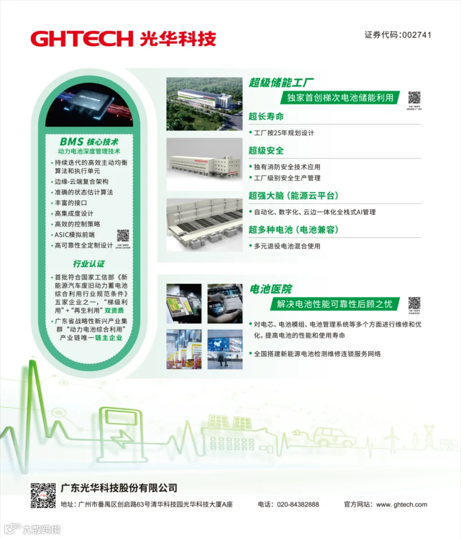 综合实力上,光华科技深耕行业40余载,受到社会各界的广泛认可,先后获得“国家高新技术企业”、“国家级技术创新示范企业”、“国家绿色工厂”等系列资质荣誉;是全国首批符合行业规范条件企业,拥有“梯级利用”“再生利用”双白名单资质;唯一入选广东省“动力电池综合利用”链主企业。