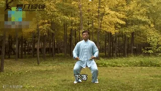 2.左手翻掌,往上举,右手翻掌向右胯的旁边下按。
