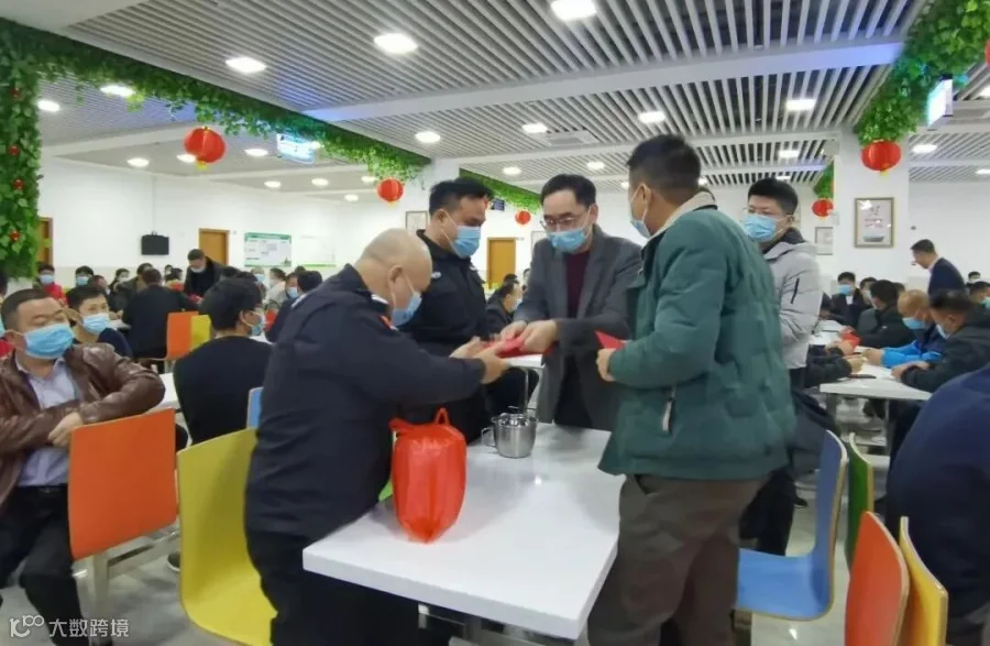公司鼓励倡导外地员工留汕过年,降低返乡高峰期间人员流动潜在风险,助力疫情防控工作,营造幸福祥和的新春氛围,公司遵守防疫要求下,组织安排了除夕年夜饭,郑靭总裁等领导在现场派发新年红包。