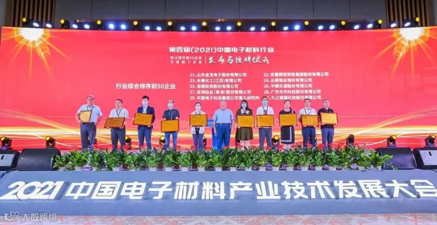 2021年——荣登“电子化工材料专业10强”榜首,入选“中国电子材料50强”;获CNAS国家认可实验室认定。