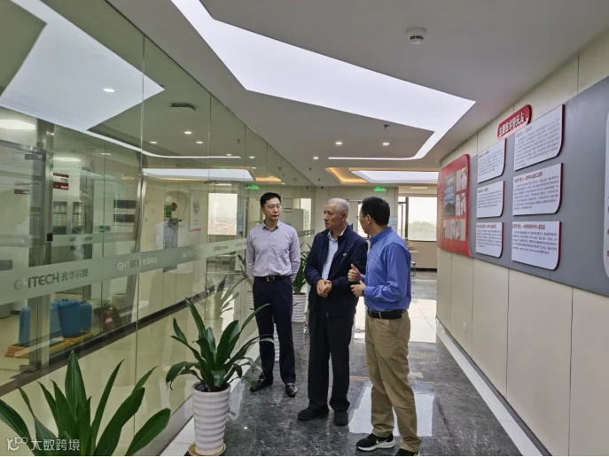 辛秘书长一行在光华科技杨总、刘总带领下,参观了光华科技研究院化学实验室、物理实验室、5G研发部、新能源研发部门等。刘总向辛秘书长一行介绍了光华科技的发展历史、取得的成绩和正在研究的有关项目。