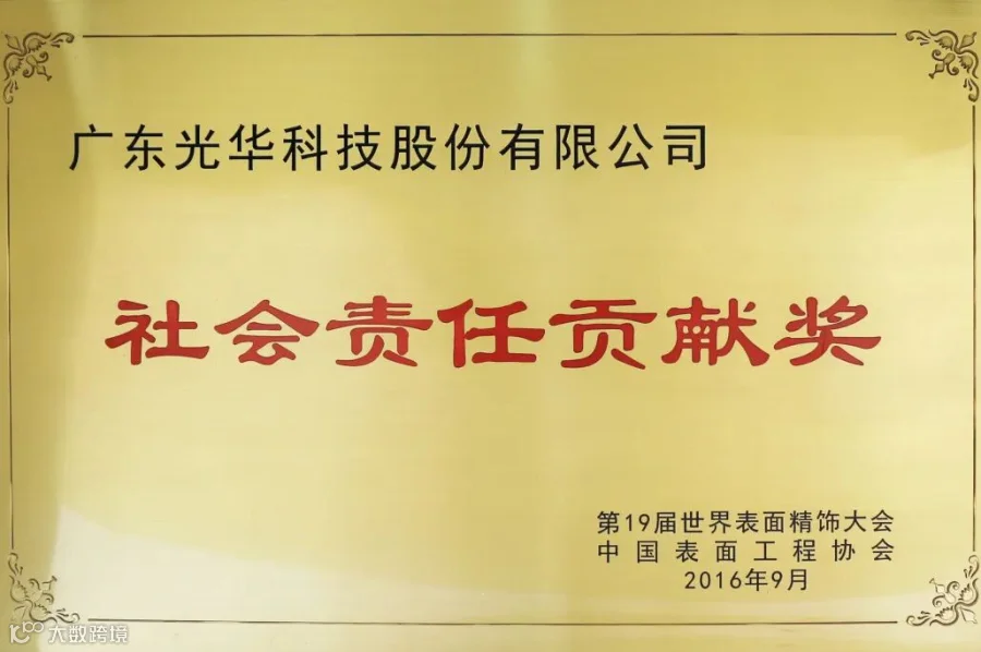 2016年获中国表面工程协会“社会责任贡献奖”