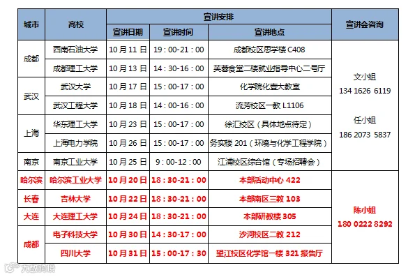 附:2018年度校园招聘宣讲具体时间安排(红色字体部分为新增宣讲会院校)