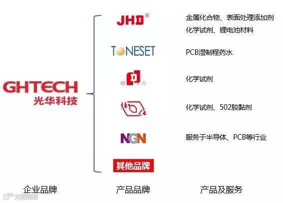 广东光华科技股份有限公司始创于1980年,经过近40年的发展,已形成以高性能电子化学品、高品质化学试剂和新能源材料产品为主导,同时提供其他专用化学品的定制开发和技术服务,集研发、生产、销售和服务为一体的专用化学品产业体系。在N.T.Informaition国际调研机构统计公布的2016年全球PCB百强生产商名单中,有49家企业已是光华科技的合作客户;其中前10强生产商中,有8家企业是光华科技的合作客户。