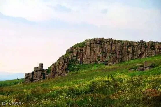 阎片山的岩石的形状很特别,是紧密排列又上下断裂了的巨大石柱群。很突兀地矗立在草原天路一侧平缓浑圆的丘陵中,是鬼斧神工般的石头奇景。旅者大多就此停车或者露营,欣赏鬼斧神工般的石头奇景。山不高,但也需要手脚并用,才可以爬上山的顶峰,远处看,像是远古巨人造就的几组相互守望的石头城堡。