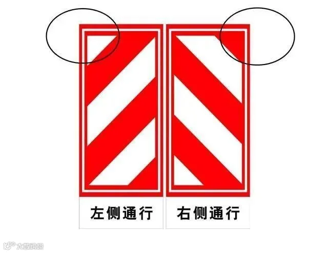 这两种表示有很多相似的地方,比如都是红色斜杠加白色斜杠组成,而最大的区别在于方向不同,左侧通行的斜杠是往左下方,同时表示左侧通行,而右侧通行的斜杠是往右下方,同时表示的是右侧通行,只要区分左下方或者右下方,就能够很好的理解是左侧通行还是右侧通行。