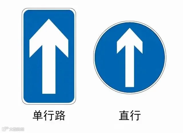 这两种标识的箭头都是一样的,最大的区别就是整个标识的形状,一个是圆形、一个是长方形,圆形的箭头标识代表的意思是直行方向,可以直行通过,而圆形的箭头标识代表的是单行道,只允许车辆朝一个方向行驶。