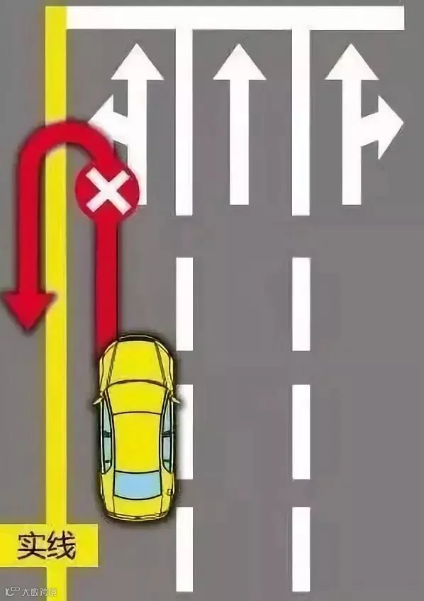 要记住凡是压着实线掉头的行为都是耍流氓。
